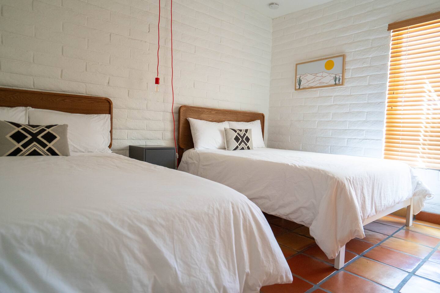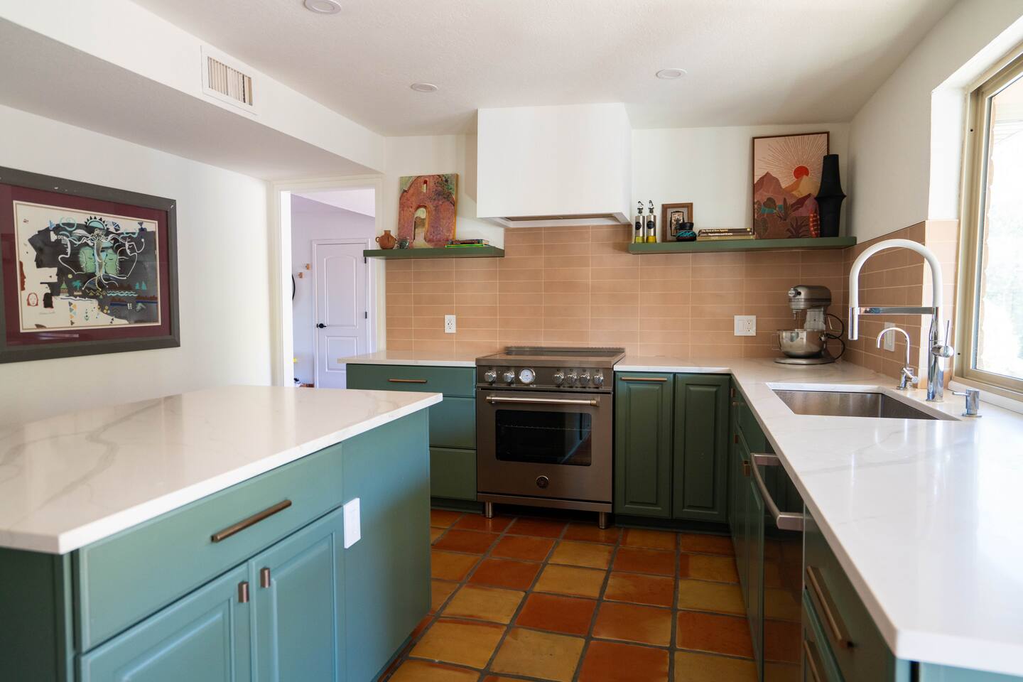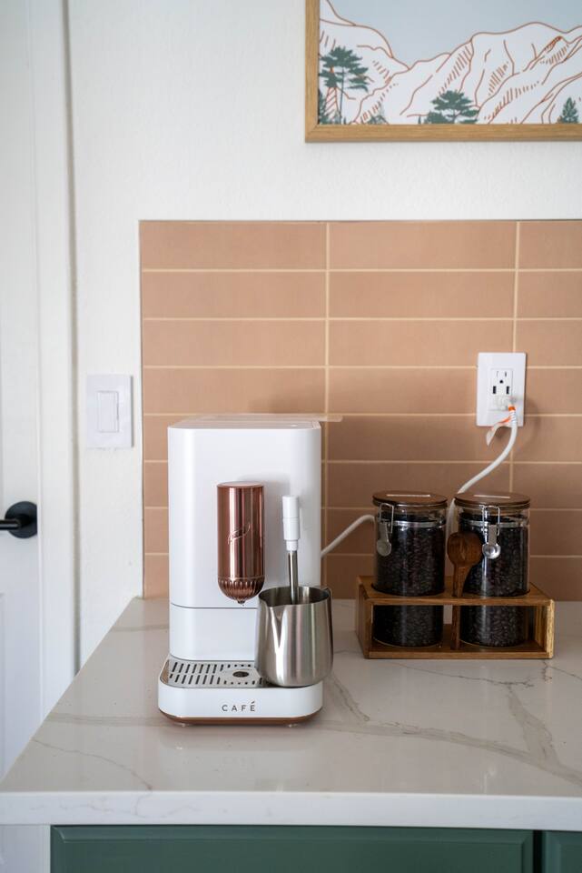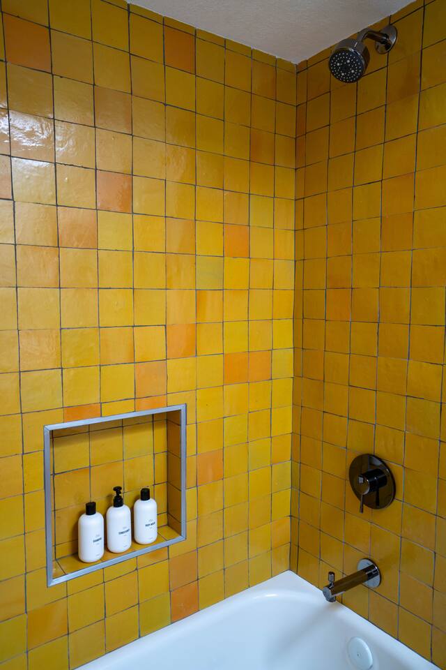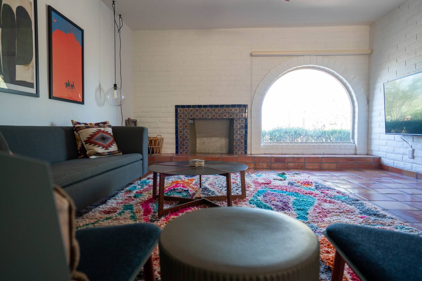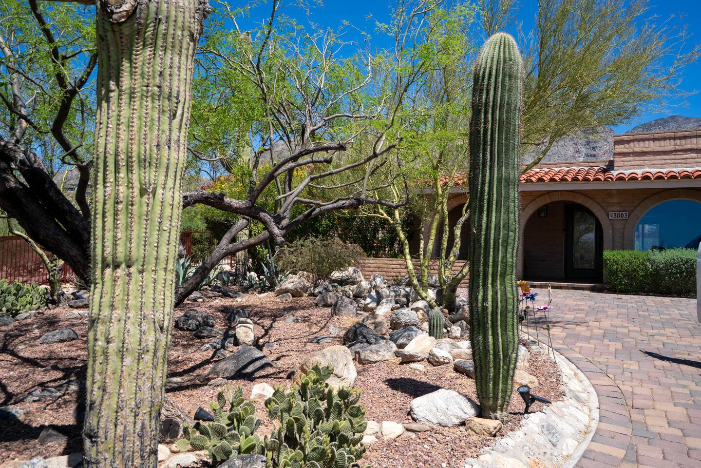The home has 3 bedrooms and 2 bathrooms along with a dining room, living room, high end chef's kitchen and an Arizona room. There is Saltillo flooring throughout the home. ++Outdoor Spaces++ The backyard has a private heated pool and hot tub - pool towels are provided along with pool toys. Note: there is no additional charge for the pool and hot tub heating, it is included in the daily rate. There are also outdoor dining and lounging areas - all with views of the Catalina Mountains. The perfect place to take in the Sonoran Sun (or open up the umbrella to get some shade) and relax. ++Living Room++ The living room has a 65" 4K Roku SmartTV with a comfortable sofa and 2 chairs. There are pillows and blankets to make it the perfect room for a night in. From the window there are views of the desert landscape with the Tucson city lights visible at night in the distance. ++Dining Room++ The dining room has seating for 6 with picture perfect views of the Finger Rock. ++Kitchen++ The kitchen with marble look quartz countertops, a Bertazzoni induction range, Bosch dishwasher, island, and large stainless steel sink with Grohe faucet is truly a chef's kitchen. There is also a built in microwave, electric water kettle, espresso machine, coffee maker, blender and all the kitchen essentials. For seating there is a kitchen table with 4 stools. In the backyard there is a Weber propane grill. Everything you need to make an amazing meal and memories. ++Arizona Room [Enclosed Porch]++ The Arizona Room (4 seasons room) has amazing view of the Catalina Mountains and the scenic desert landscape that surrounds the home. One side has a dedicated workspace with an ergonomic chair and deck. On the other end is a sofa, 40” 4K TV with Roku, elliptical machine and 2 yoga mats. Perfect place to relax or even do morning yoga. There is a split unit that cools and heats the room as well to help keep it comfortable. ++Primary Bedroom & Bathroom++ The primary bedroom has a king size bed with direct access to a patio via a sliding door with an outdoor bistro seating area. There is also an attached spa-like bathroom with handmade Moroccan Zellige tile shower with a Grohe rain shower and designer vanity. ++Second Bedroom++ The 2nd bedroom has 2 full size beds along with a closet to hang clothes. ++Third Bedroom++ The 3rd bedroom has a queen size bed along with views of the city skyline at night. There is also a pack-n-play crib stored in the closet. All the beds are made of memory foam and are topped with pillow top mattress covers to give them a softer feel. ++2nd Bathroom++ Off the hallway is the second bathroom which has a tub with bright yellow handmade Zellige tile and a large vanity. ++Laundry Room++ There is a laundry room with a full size washer and dryer along with an iron and ironing board. Detergent pods are provided. There is also a utility sink - great for cleaning up hiking or golf equipment. TPT ID: 21475900