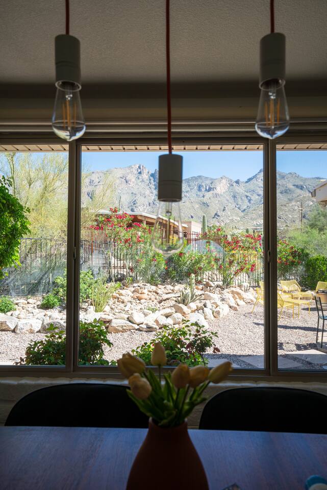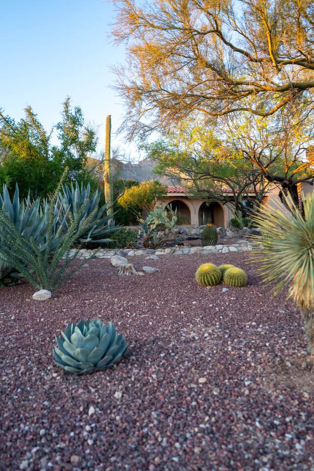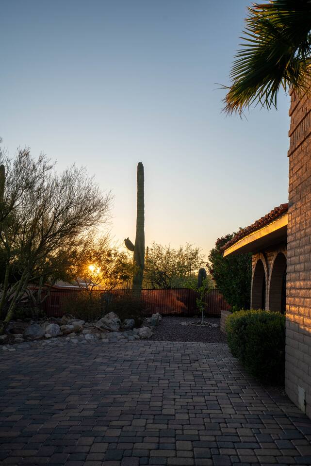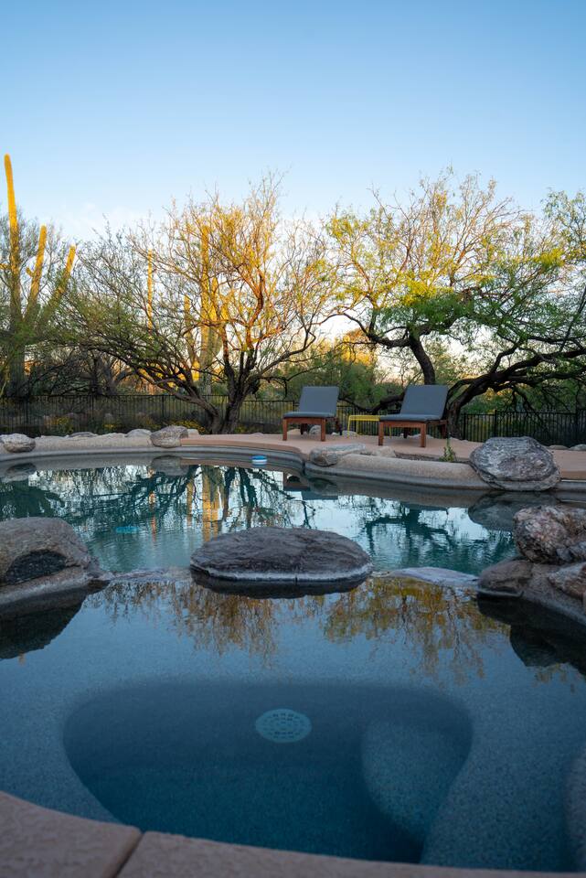 **Free pool & spa heating included in all stays!** Welcome to Hacienda Riad: a unique fusion of Sonoran and Moroccan design. 16 mins to University of Arizona 25 mins to Downtown Tucson 27-37 mins to Saguaro National Park (West/East) The house is located in a quiet neighborhood in the foothills of the Catalina Mountains surrounded by native desert landscape. The home is perfect for relaxation by the private pool and has numerous luxurious touches while being comfortable, unique & casual.
