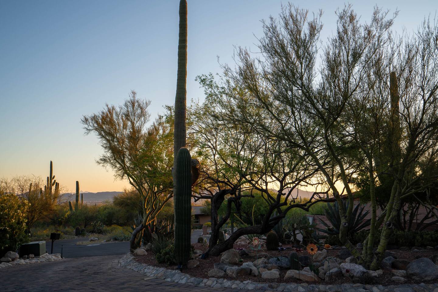 Home is located in a quiet neighborhood located in the desert foothills of the Catalina Mountains but located close by to downtown Tucson, University of Arizona, high end shopping, Whole Foods, wonderful restaurants, hiking trails, golf courses and much much more.